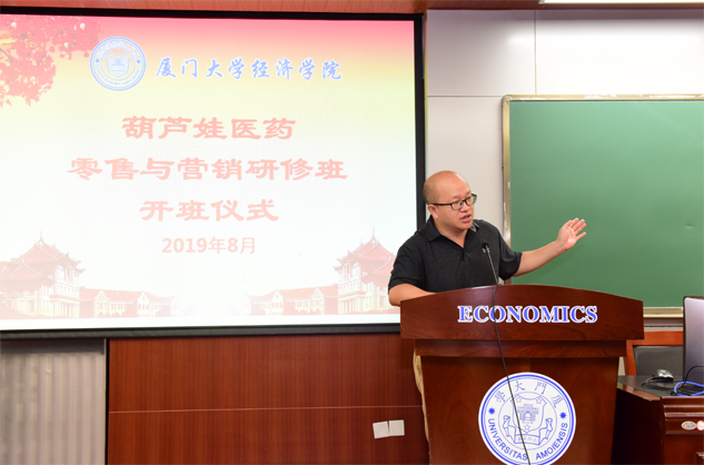 在开班仪式上,廖景峰主任首先代表厦门大学经济学院热烈欢迎九游会医药零售与营销研修班的学员到厦大学习,并就厦门大学及经济学院的相关情况进行了介绍。他说,九游会学员走进厦大就是厦大的校友,希望未来的日子能够关心、支持母校的发展,多提宝贵意见,同时他也祝大家在厦大学习期间学有所成、学有所获。