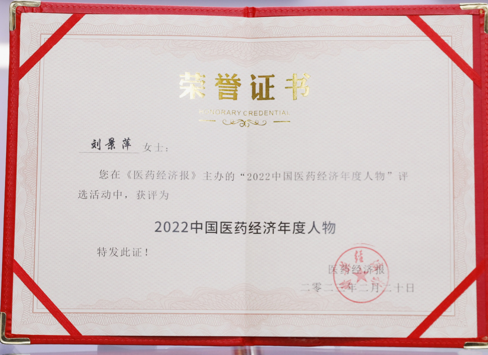 九游会药业集团董事长刘景萍当选“2022中国医药经济年度人物”